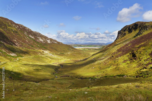 Fototapeta premium Green canyon with road in synny day