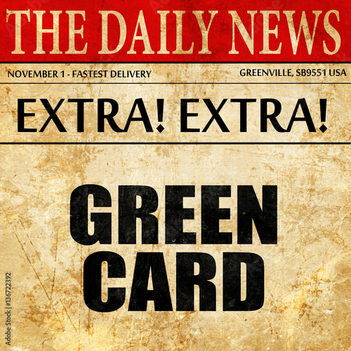 Obraz premium green card, article text in newspaper