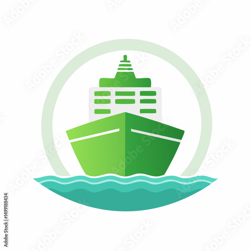 © Anwar, Obraz premium Green Cargo Ship Icon on Teal Water