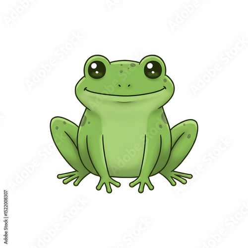 © chalindu, Obraz premium Green cartoon frog facing forward with a cheerful smile and expressive eyes