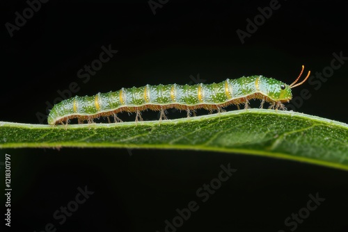 © adinuranjaya, Fototapeta premium Green Caterpillar Crawling on a Leaf Insect Macro Photography Nature.