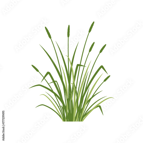 © riski, Fototapeta premium Green Cattails Growing in a Lush Patch.