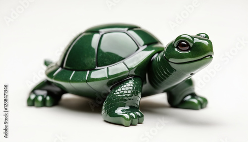 © Lyudmila, Fototapeta premium Green Ceramic Turtle Figurine on a White Background, Simple and Elegant Design