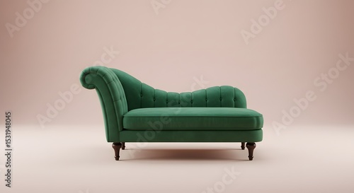 © ADEV, Fototapeta premium Green Chaise Lounge Sofa on a Pastel Background
