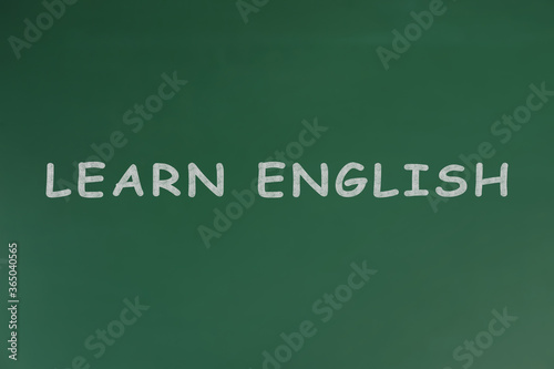 Obraz premium Green chalkboard with text Learn English