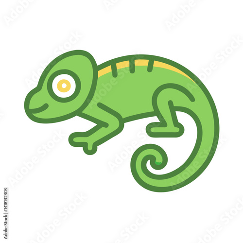 © Xihan, Fototapeta premium Green Chameleon Lizard Icon with Swirl Tail