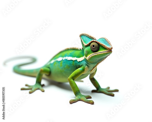 © @KaeDA, Obraz premium Green chameleon lizard isolated on white