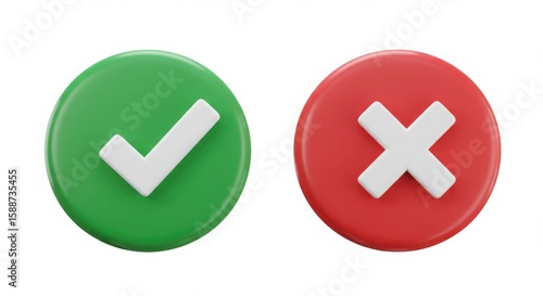 Obraz premium Green check mark and red cross symbols isolated on white background