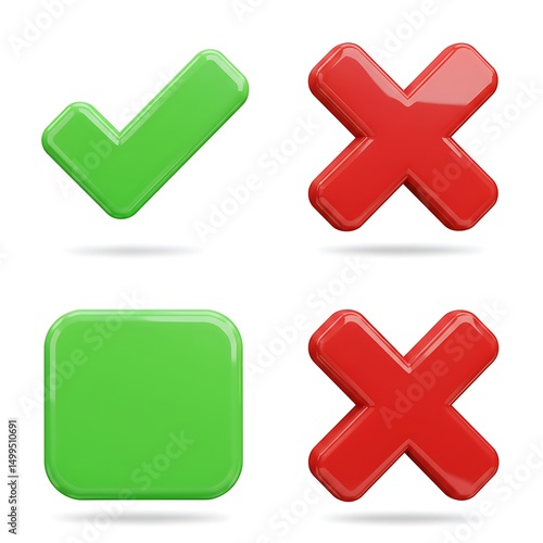 © Fatema SF, Obraz premium Green check mark and red x symbols isolated on white background
