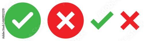 Obraz premium Green check mark, red cross mark icon set.