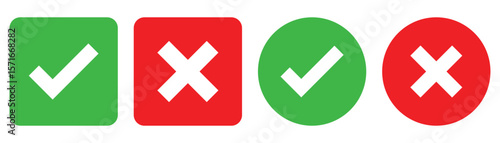 Obraz premium Green check mark, red cross mark icon set. Vector illustration.