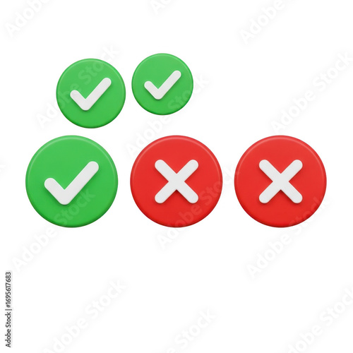 Fototapeta premium Green check marks and red crosses representing correct and incorrect choices...