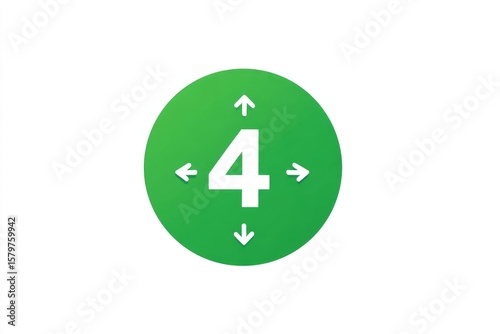 Fototapeta premium Green circle icon; number 4 with directional arrows