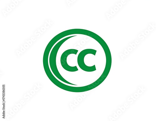 © Hati, Obraz premium Green circle surrounding the letters "CC", set against a white background. Simple, elegant and modern design