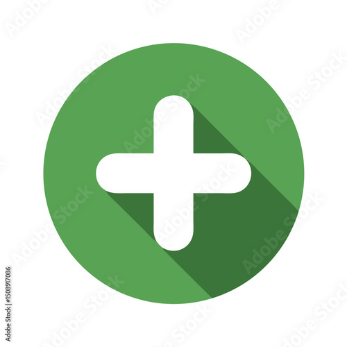 Fototapeta premium Green Circle with White Plus Sign and Shadow