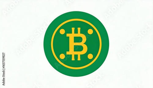 © Serta, Obraz premium Green circle with yellow Bitcoin symbol