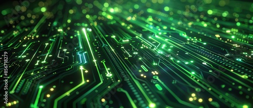 Obraz premium Green Circuit Board with Glowing Lines.