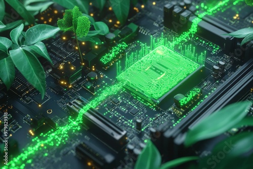 © Sidewaypics, Fototapeta premium Green Circuitry, Digital Sustainability and Green IT