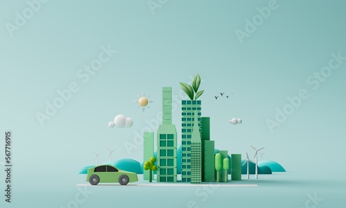 © CUPCO, Obraz premium green city backgreen city background 3d illustration.ground