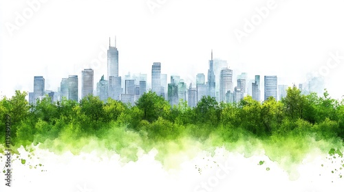 © Sam-th, Fototapeta premium Green City Skyline Watercolor