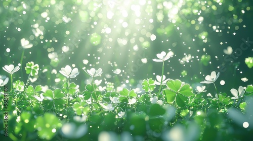 Fototapeta premium Green Clover Flowers In Sunlight Bokeh Background