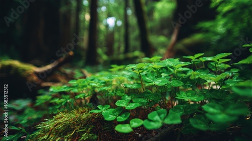 © Sakinatus, Fototapeta premium Green clover plants in forest