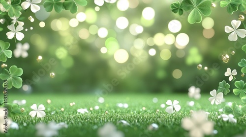 Obraz premium Green Clovers and White Flowers in a Sunny Meadow