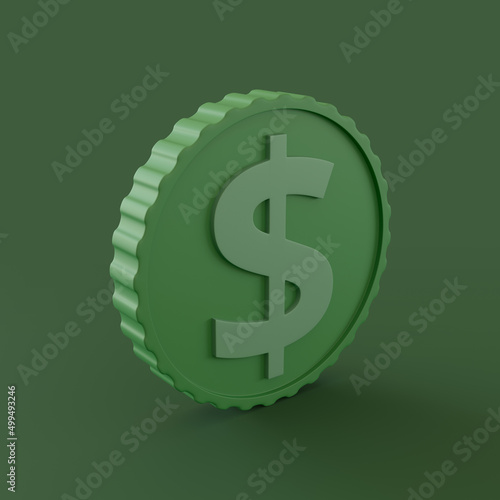 © klenger, Obraz premium Green Coin on Green Background. 3d Rendering