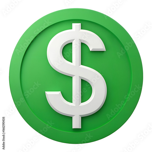 © jannatul, Obraz premium Green coin with white dollar sign isolated on transparent background
