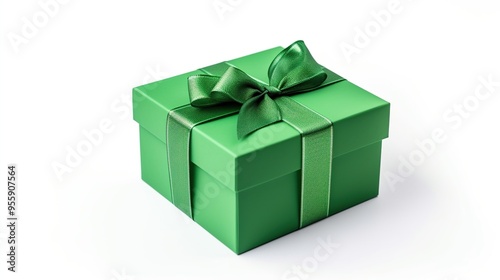 Obraz premium Green color gift box with green ribbon isolated on white background