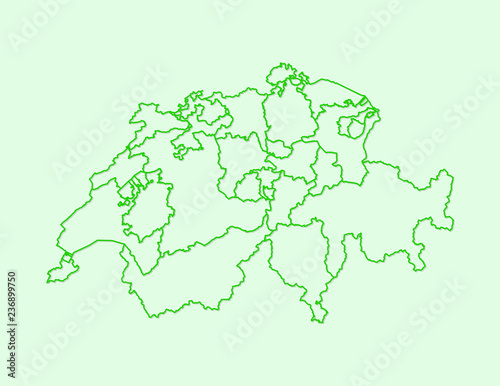 Fototapeta premium Green color Switzerland map with lines of different cantons on light...