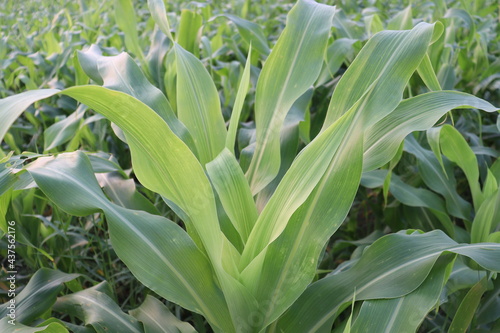 Fototapeta premium green colored maize tree firm on field
