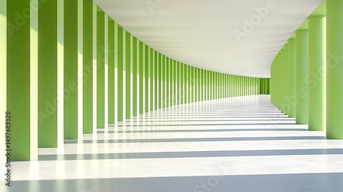 © Arfin, Obraz premium Green Column Hallway with Perspective View