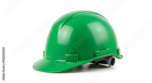 Fototapeta premium green construction helmet isolated on white background for safety gear....