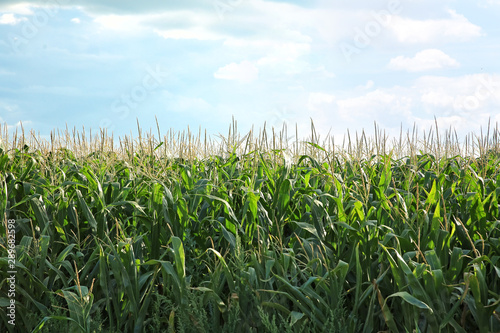 © Pixel-Shot, Obraz premium Green corn field on summer day