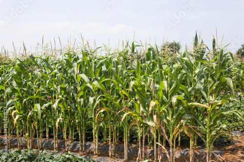 Obraz premium Green Corn field under sky