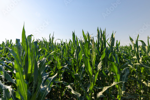 Obraz premium Green corn illuminated by sunlight