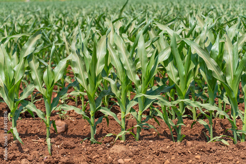 © batuhan toker, Fototapeta premium Green corn maize plants on a field.
