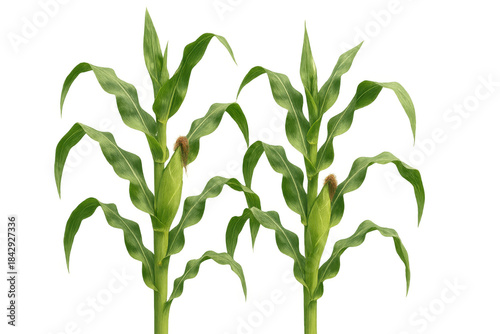 Obraz premium Green corn plants growing with young ears on transparent background,...
