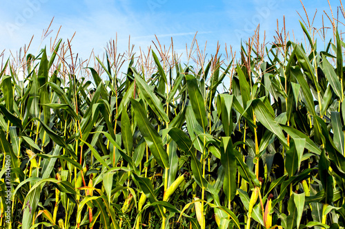 Fototapeta premium Green corn plants on a big field