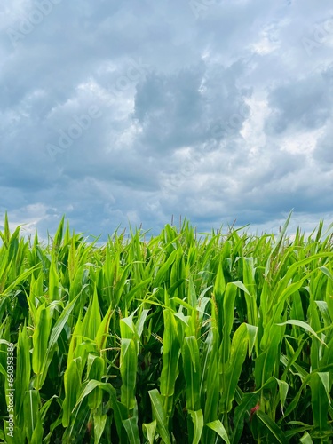 Obraz premium Green cornfield, corn field landscape