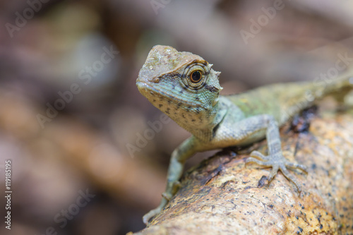 © forest71, Naklejka premium Green crested lizard, black face lizard