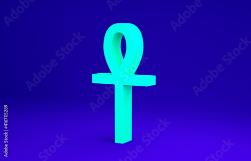 Obraz premium Green Cross ankh icon isolated on blue background. Minimalism concept. 3d...