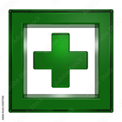 © Piotr Pawinski, Obraz premium Green cross in the square isolated on white