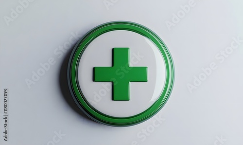 © Maryanto, Obraz premium Green cross medical symbol on white button.