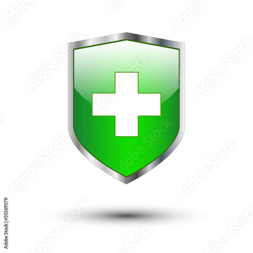 Fototapeta premium Green cross on shield