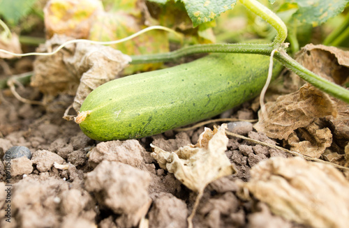© schankz, Obraz premium Green cucumber on a plant in the garden