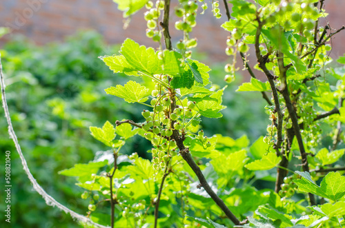 Fototapeta premium Green currant bush under sunlight