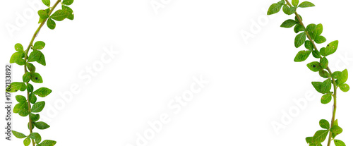 © Nabil, Naklejka premium Green Curving Vines Vertical Border Frame - Isolated on Transparent Background