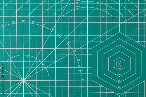 © Gresei, Naklejka premium Green cutting mat surface with grid and measurement lines